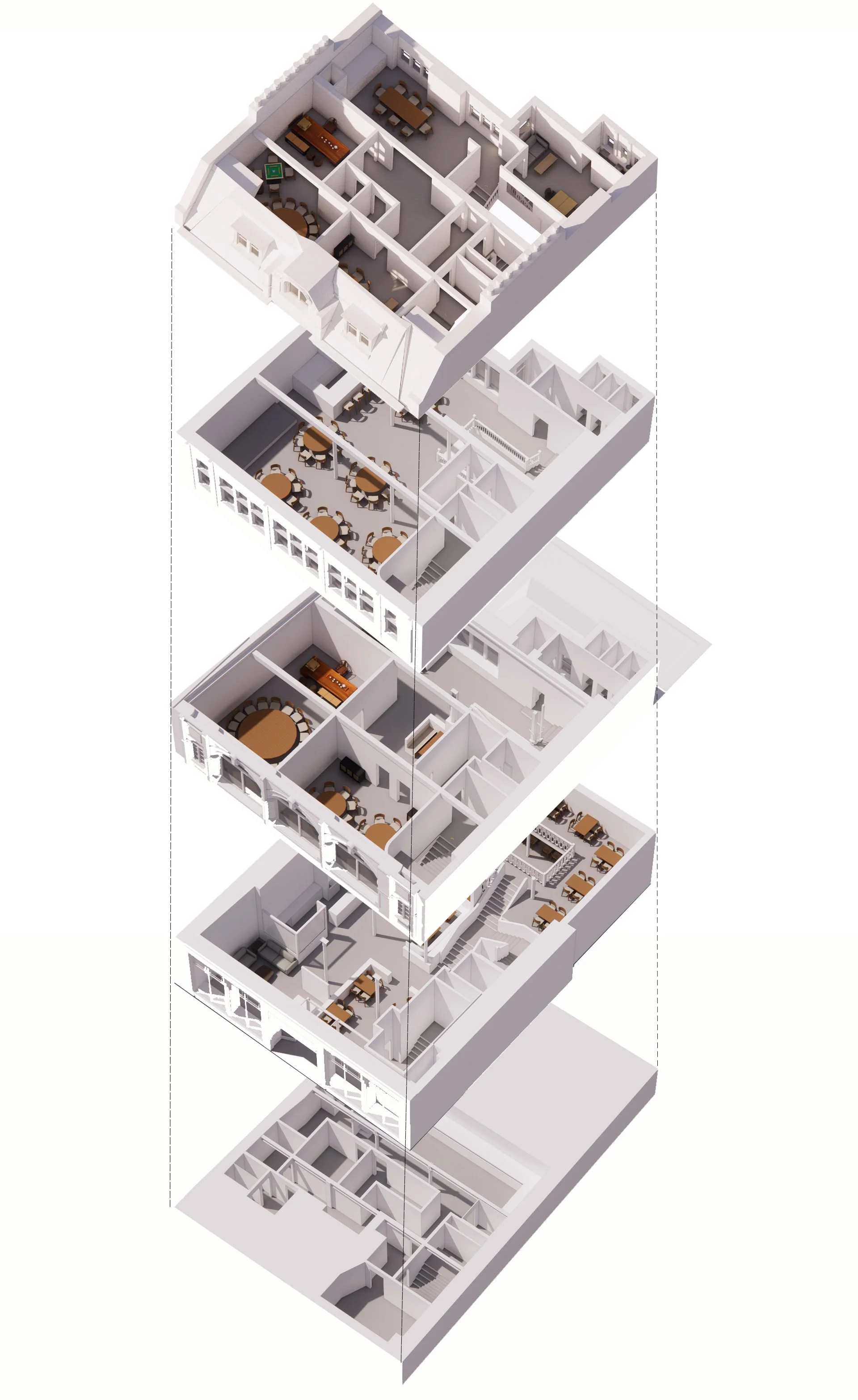 The design prioritises the preservation of the historic fabric while introducing the infrastructure needed to support the building’s new use.
